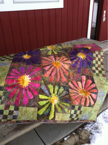 7. Binding on Batik Flowers quilt for A Lovely Year of Finishes- due end of Jan